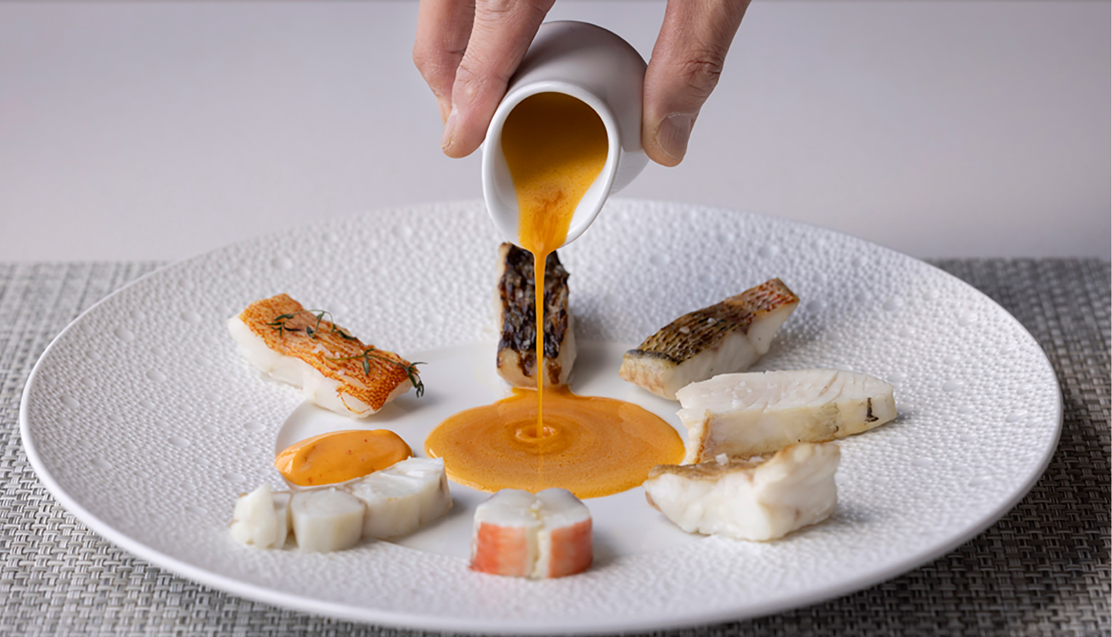 A view of Kyoto that fills the hotel’s top floor and a relaxing casual feel that’s just right. The inside of the restaurant has an excellent view of Japan’s ancient capital beyond its large window, and is the perfect venue for anniversaries, including birthdays and family gatherings. The Kyo-Cuisine served here, which was created for Japanese and overseas guests and combines the blissful satisfaction of French food along with the lightness of Italian food, has a beautiful appearance that’s truly excellent. Their “Menu pléiade -Chef Suzuki’s Recommended Course” served in the evening features seasonal ingredients carefully selected by the chef – which are, as much as possible, stocked from Kyoto. This course can be had for 16,800 yen (tax included).
