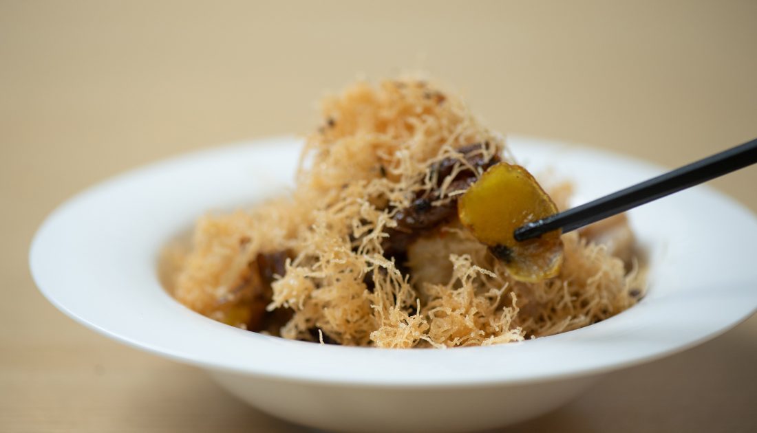 A delicious encounter of the lean tuna with Miyama yuba (tofu skin)